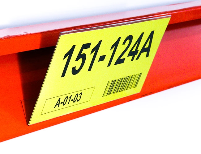 Pallet rack label holder. Size 210x100 mm. Transparent angled 45 degrees with magnet. 50 pcs / pack.